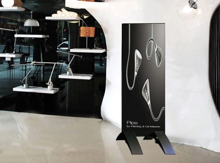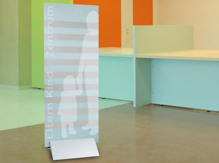 Mit dem Panel wird das Pressto zu einem Hinweisschild, Werbebanner, Raumteiler oder einem dekorativen Element im Innen- und Außenbereich. In den Plattenhalter Pressto können unterschiedliche Materialien eingespannt werden.