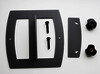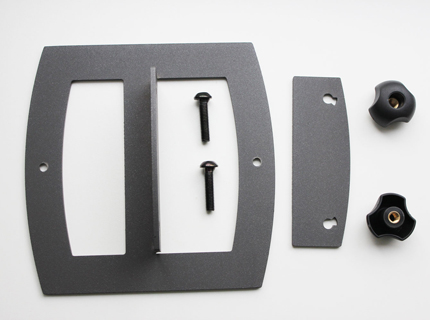 Klemmsystem aus pulverbeschichtetem Metall, raue Oberfläche.