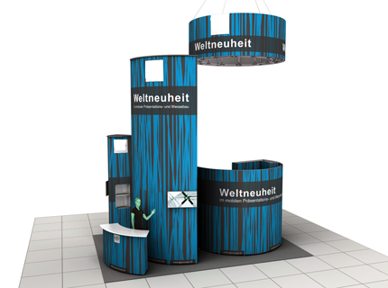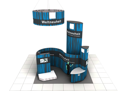 • Mit ein und denselben Systemelementen Wände, Türme, Theken, Podeste, Deckenabhänger etc. realisierbar.
