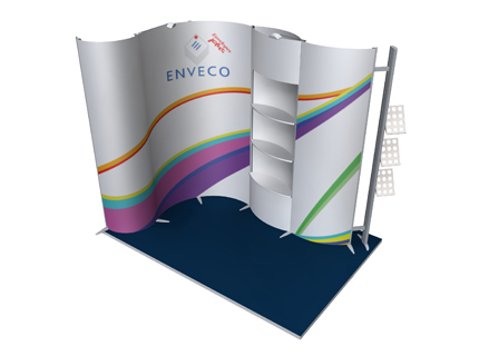 ISOframe wave eröffnet 1000 neue Möglichkeiten für Ihren Messestand. Das Ausstellungssystem mit der patentierten Flexi-Link Verbindung lässt sich in fasst jede gewünschte Form bringen -je nach Bedarf und den gegebenen Stellmöglichkeiten. Je nach Einsatz und Anforderung werden beliebig viele Flexi-Link-Verbinder aneinandergefügt, das Gestänge hineingesteckt und das gesamte Display in die gewünschte Form gebogen. Die patentierte Flexi-Wellen-Verbindung sorgt auch beim Biegen und Dehnen des Displays bis zu 180° maximale Standstabilität. Mit passenden Extension-Modulen lässt sich ISOframe beliebig um jeweils 800 cm breite Einheiten verlängern. Dank der Schnell-Klemm-Verbindungselemente ist die Montage werkzeuglos durchführbar. Zusätzliche Träger ermöglichen das Anbringen von Regalen, Tischelementen, TFT- oder LCD-Bildschirmen. ISOframe wave ist in zwei Höhen erhältlich: 2250 mm (Midi) und 2450 mm (Maxi).