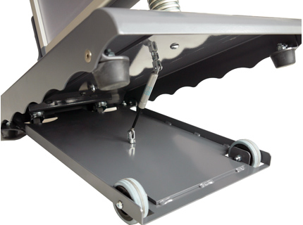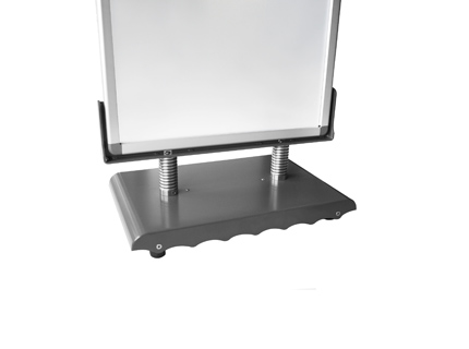 Stabiler Klapprahmen auch für draussen: doppelseitig mit intelligentem design für leichten transport. clip car einfach hochklappen und schon lässt sich das display auf den vollgummirollen in position bringen. 2 räder sind lenkbar für einfaches manövrieren. zugeklappt steht clip car unbeweglich, da die feststellbremse aktiviert ist. spritzwassergeschützt ist ihre info unter der uv-resistenten abdeckfolie. mit dem cleveren transport-mechanismus können sie das display bei regen schnell ins trockene bringen.