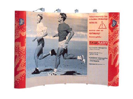 Faltwände sind leichte, kompakte und tragbare Präsentationssysteme. Sie lassen sich sehr schnell zu einer fertigen Wand aufziehen, die dann, kombiniert mit Großfotos oder -drucken, ideal für exklusive Präsentationen geeignet sind. Faltwände sind mit Einzelpanels oder mit Bahnen bestückbar. Durch spezielle Verbindungstechniken erhalten Sie eine "nahtlose" Präsentationsfläche. Wahlweise als gebogenes oder gerades System verfügbar.