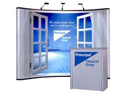 Faltwände sind leichte, kompakte und tragbare Präsentationssysteme. Sie lassen sich sehr schnell zu einer fertigen Wand aufziehen, die dann, kombiniert mit Großfotos oder -drucken, ideal für exklusive Präsentationen geeignet sind. Faltwände sind mit Einzelpanels oder mit Bahnen bestückbar. Durch spezielle Verbindungstechniken erhalten Sie eine "nahtlose" Präsentationsfläche. Wahlweise als gebogenes oder gerades System verfügbar.