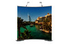 OCTApole ist eine neu entwickelte Präsentationstechnik, mit deren Hilfe sich formschöne Ausstellungswände und Messestände konstruieren lassen. Anders als bei den bekannten Scherengittersystemen ist es mit diesem System möglich, eine komplette Wandabwicklung z.B. für einen Messestand leicht und komfortabel aufzubauen und zu transportieren. Kein Scherengittergerüst stört das Design Ihres Messestandes. Die Umsetzung ist ganz einfach. In das gebogene bzw. gerade Schienensystem wird mittels Keder ein großflächiger Stoffdruck eingefügt, der durch die höhenverstellbare, rückseitige Stange auf ein Maß bis zu 2,50 m gespannt werden kann.