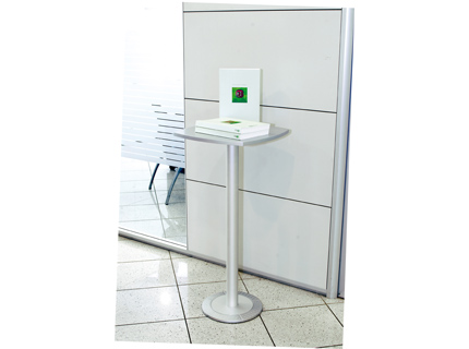 Mit den Rondo Tischen aus dem Stopper Programm Mehrwert sichern: Tischplatten sind in Glas oder Silber erhältlich. Kombinieren sie beide Platten miteinander dann erhalten sie eine schnell personalisierbare Werbefläche, indem sie einen Druck unter die Glasplatte legen. Rondo ist schnell aufgestellt und empfiehlt sich v.a. durch seine zusätzlichen Marketing Flächen für Messen, Events, Shop, Showroom und Office.