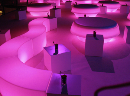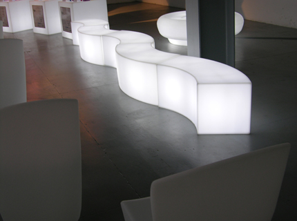 Das beleuchtbare Sitzelement ist die perfekte Kombination aus Ästhetikund Funktionalität und kann sowohl im Innen- als auch im Außenbereich verwendet werden.