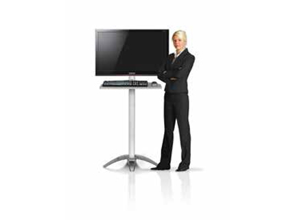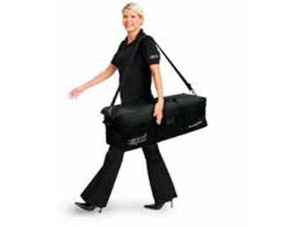 Die Gesamtkonstruktion wird standardmäßig in einer stabilen Transporttasche ausgeliefert und wiegt komplett nur ca. 20 kg (ohne Monitor). Bei Bedarf steht als Zubehör eine Keyboardablage zur Verfügung.