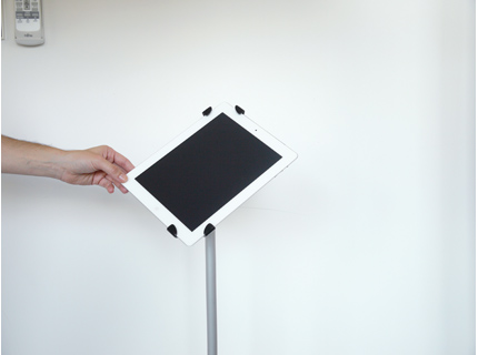 „pad man“ hält ihr ipad 2 auf einer Teleskopstruktur aus silbereloxiertem Aluminium. „Pad man“ ist schnell aufgebaut und ein attraktiver Hingucker für jede interaktive Präsentation. Eine doppelte Basis sorgt für ausreichend Stabilität. Die intelligente Halterung erlaubt ihnen die horizontale wie vertikale Verwendung. Ohne Probleme lässt sich der ipad um 90° drehen. Das ipad ist im Lieferumfang nicht enthalten.
