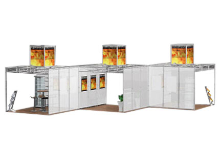Mit dem Grundmodul OCTAquick bieten wir Ihnen ein flexibles Präsentationssystem, aus dem sich Messestände in unterschiedlichen Größen und verschiedensten Anwendungsmöglichkeiten konstruieren lassen. Der aufgeführte Stand ist auf Wunsch "direkt von der Stange" zu einem Festpreis lieferbar. In diesem Festpreis sind alle aufgeführten Theken, Vitrinen, Prospektständer u.ä. beinhaltet. Möblierung wie Stühle, Tische und Pflanzen werden separat berechnet und sind vor Ort von der Messe direkt erhältlich. Natürlich lassen sich Kundenwünsche auch individuell berücksichtigen.