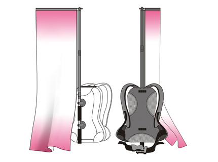 Neue Wege in der Straßenwerbung gehen? Statten Sie Ihre Promoter einfach mit dem patenten Backpack Banner aus. Ob Sie mobile flags oder individuell gestaltete cutouts ausschwärmen lassen: dieses tragbare Promotion-System bürdet Ihren Einsatzkräften kein unnötiges Gewicht auf und sichert Ihrer Kampagne maximale Aufmerksamkeit. Die hochwertige Produktqualität garantiert Ihren Botschaften eine ansprechende Wirkung und ermöglicht maximale kreative Freiheit. – So variabel und einfach kann Außenwerbung sein!