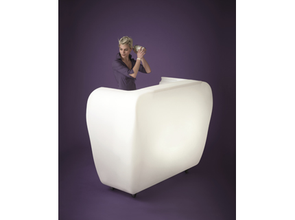 Slide Design sorgt mit dem durch transluzenten Polyethylene schimmernde Licht für eine angenehme Atmosphäre und für allgemeines Wohlbefinden, ob Barkeeper oder Gast, an dieser Bar fühlt sich garantiert jeder wohl.