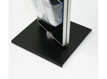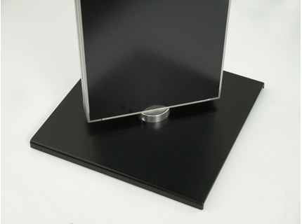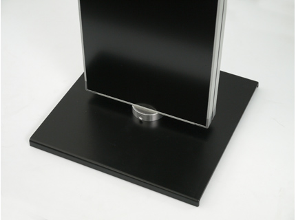 Panel-Materialien: Doppelseitiges, schwarzes Aluminiumpaneel, umlaufender, silber eloxierter Alurahmen zzgl. Prospektboxen zum Einhängen für DIN A4, DIN A5 oder DIN A6 Format, aus PS-Polystyrol