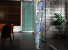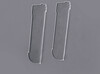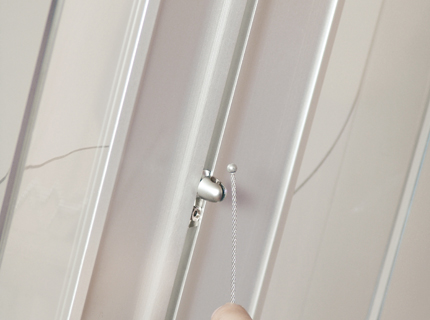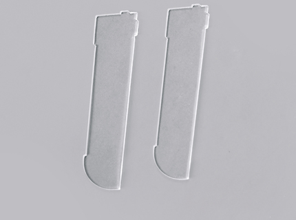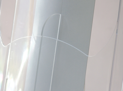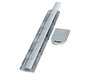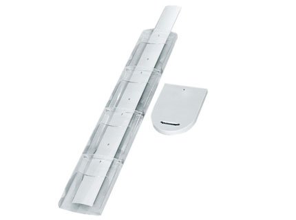 Vier schlagfeste Spritzgusstaschen aus Polycarbonat, vormontiert auf silber eloxiertem Aluminiumprofil. Basis silber lackiertes MDF mit Metalic-Halter für Stahlseil