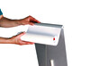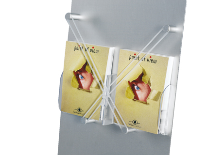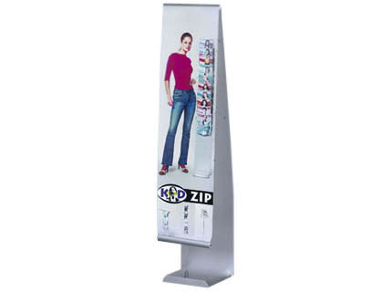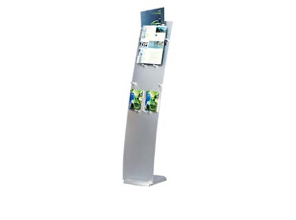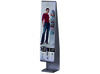 Die zweiteilige Grundstruktur ist schnell aufgestellt. Silbermatt verchromte Halter in Kombination mit transpatenten O-Ringen machen Velo zum Infopanel und Prospektständer gleichzeitig. Versehen mit unterschiedlichem Zubehör, können an dem Ständer DIN-A4-Postertaschen aus Acryl, Aluminiumprofile für Bannereinsatz sowie Gummischlaufen zur Prospektanbringung eingesetzt werden. Versehen mit einem LCD (siehe Velo Media) wird Velo zur multimedialen Präsentationsfläche.