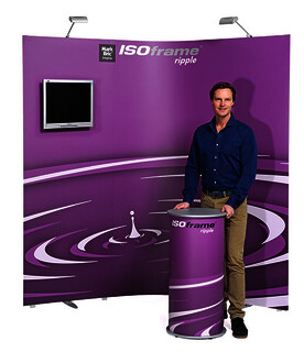 Warum soll man sich zwischen Banner oder PopUp Wand entscheiden – wenn man beides haben kann? Jetzt gibt es das revolutionäre und ultra leichte Banner-Verbindungs-System ISOframe Ripple. Grundlage des Systems sind zwei stabile Kassettenbanner-Systeme mit einer Breite von 80 cm und 210 cm Höhe. Durch eine flexibel bewegbare Verbindungsbahn können die zwei Kassettenbanner-Systeme miteinander verbunden werden. Die so entstandene Wand ist völlig flexibel und kann in verschiedene Formen gebogen werden. Unterschiedliche räumlichen Gegebenheiten sind nun kein Problem mehr! Die Verpackung des Systems erfolgt in einem Transportköcher, der versehen mit einer Grafikbanderole und einer Tischplatte, als Theke eingesetzt werden kann.