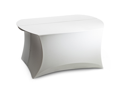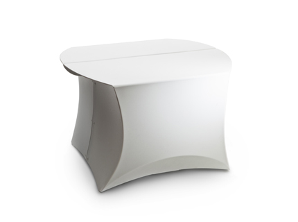 Die wohl einzigartigste Eigenschaft des Coffee Tisches ist die jederzeit komprimierbare Außenhülle. Zusammengelegt ist der Coffeetisch lediglich 1,8 cm dick und lässt sich platzsparend lagern.