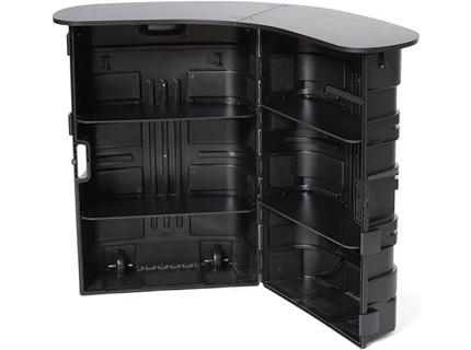 Eine Transportbox, die in eine geräumige Theke verwandelt werden kann. Dazu brauchen Sie nur die Box zu öffnen und die optional bestellbare silberne Thekenplatte aufzulegen. Die Theke bietet einen geräumigen Stauraum bei Messen und sonstigen Veranstaltungen. Auf der Rückseite der Theke befinden sich herausnehmbare Regale für Ihre Broschüren und anderes Werbematerial, für Drinks usw. ISO Frame Counter Case kann sowohl als Theke (bei offener Box) wie auch als Podest (bei geschlossener Box) verwendet werden.