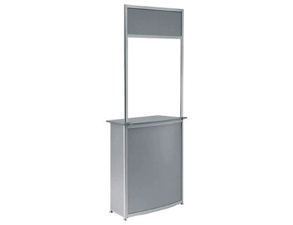 Die Messe- und Promotiontheke OCTAcounter verfügt über ein zeitloses Design. Sie ist vielseitig einsetzbar und individuell erweiterbar. Der OCTAcounter ist komplett silberfarben lieferbar und lässt sich auf Wunsch zusätzlich mit Grafik versehen. So wird aus der Theke ein individueller Werbeträger. Die Außenplatten sind in Aluminiumprofile gefasst. Der OCTAcounter lässt sich leicht transportieren und schnell auf- und abbauen. Beim Aufbau benötigt man keinerlei Werkzeuge - und doch bietet die Theke optimale Stabilität. Das funktionale Design erlaubt die Kombination von mehreren OCTAcountern z.B. zu einem Halbkreis und mit anderen Displaywänden und -systemen.
