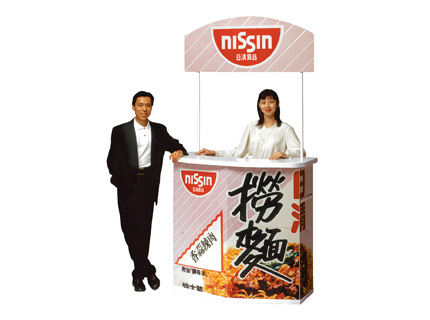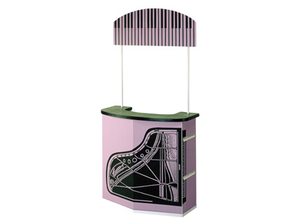 Der Promotor Champion besteht aus einer Thekenplatte, einem Regal, einer Bodenplatte und einem Korpus sowie einem Topschild.