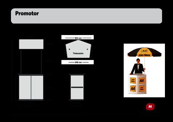 Hohe Belastbarkeit und ein vielfältiges Zubehör zeichnen die Promotortheken aus. Das Modell Classic kann beispielsweise um eine Tür erweitert werden. Der Kunststoff sorgt für eine lange Lebensdauer und macht den Außeneinsatz jeder Promotortheke möglich. Für etwas Schutz sorgt dabei der optionale Dachschirm.