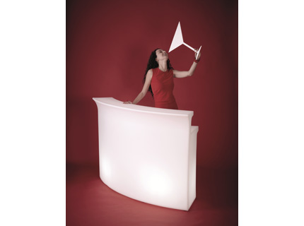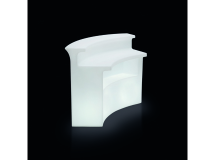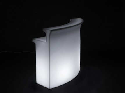 Moderne beleuchtete Bar von Slide-Design. Dieses robuste Leuchtmöbel ist aus Polyethylen in Rotationsformtechnik hergestellt. So lässt sich diese BREAK BAR nicht nur indoor sondern auch außen auf der Terrasse oder im Garten bedenkenlos einsetzen. Mit zwei Energiesparleuchten lässt sich diese Bar ausreichend hell in Szene setzen. Für Flaschen, Gläser und weitere Utensilien ist eine weitere Ablagefläche vorhanden.