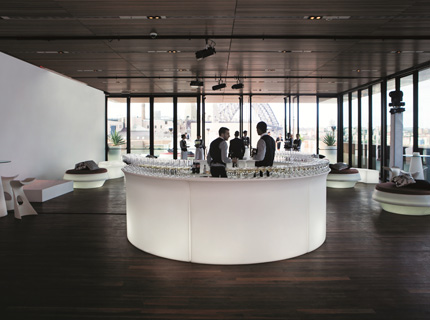 Die BREAK BAR ist nicht nur ideal geeignet für den privaten Bereich, sondern auch für Ausstellungen, Verkaufsräume, Szenekneipen sowie anspruchsvolle Barbetriebe. Die Rundung erlaubt es, z.B. mit 4 dieser Elemente ein Rondell mit ausreichend Zugang zu formen.