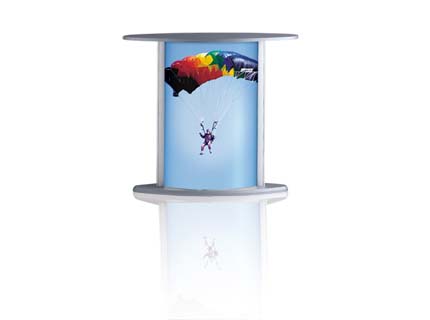 Starker Auftritt, variable Optik. Das Säulendisplay vario d7 gibt es wahlweise mit Beleuchtung, die über einen Fußschalter bedient wird, oder ohne Beleuchtung. Die Panels (Hartschaum bzw. Acrylglas) lassen sich mit den Clips-Profilen schnell und problemlos auswechseln.